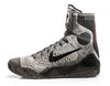 GREY WASHED LEATHER WITH RED STITCH CALF DETAIL.
